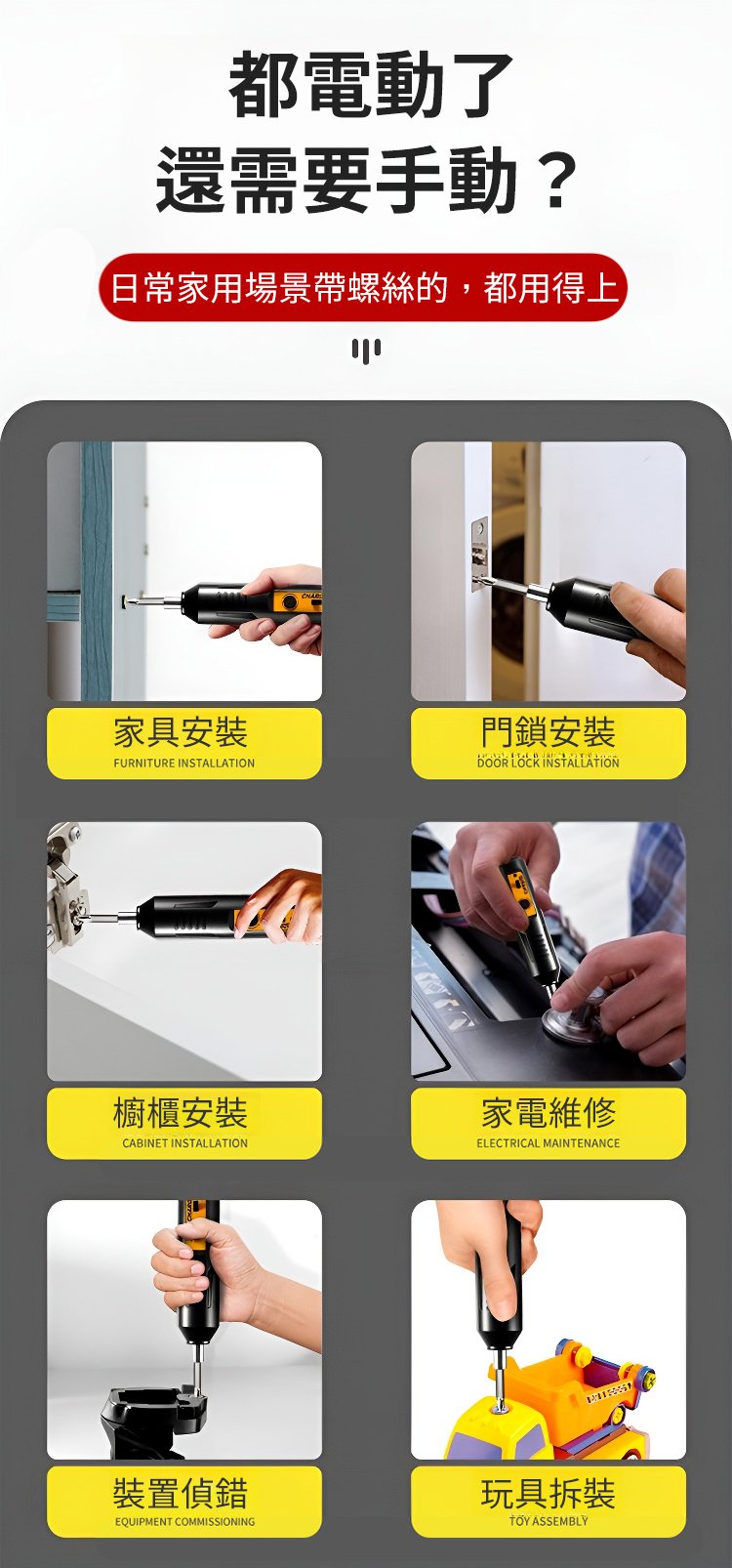 2分鐘前便攜式家用電動螺絲起子-全能套裝 - 電動螺絲起子-贈送兩個長批頭-不推薦-NT999